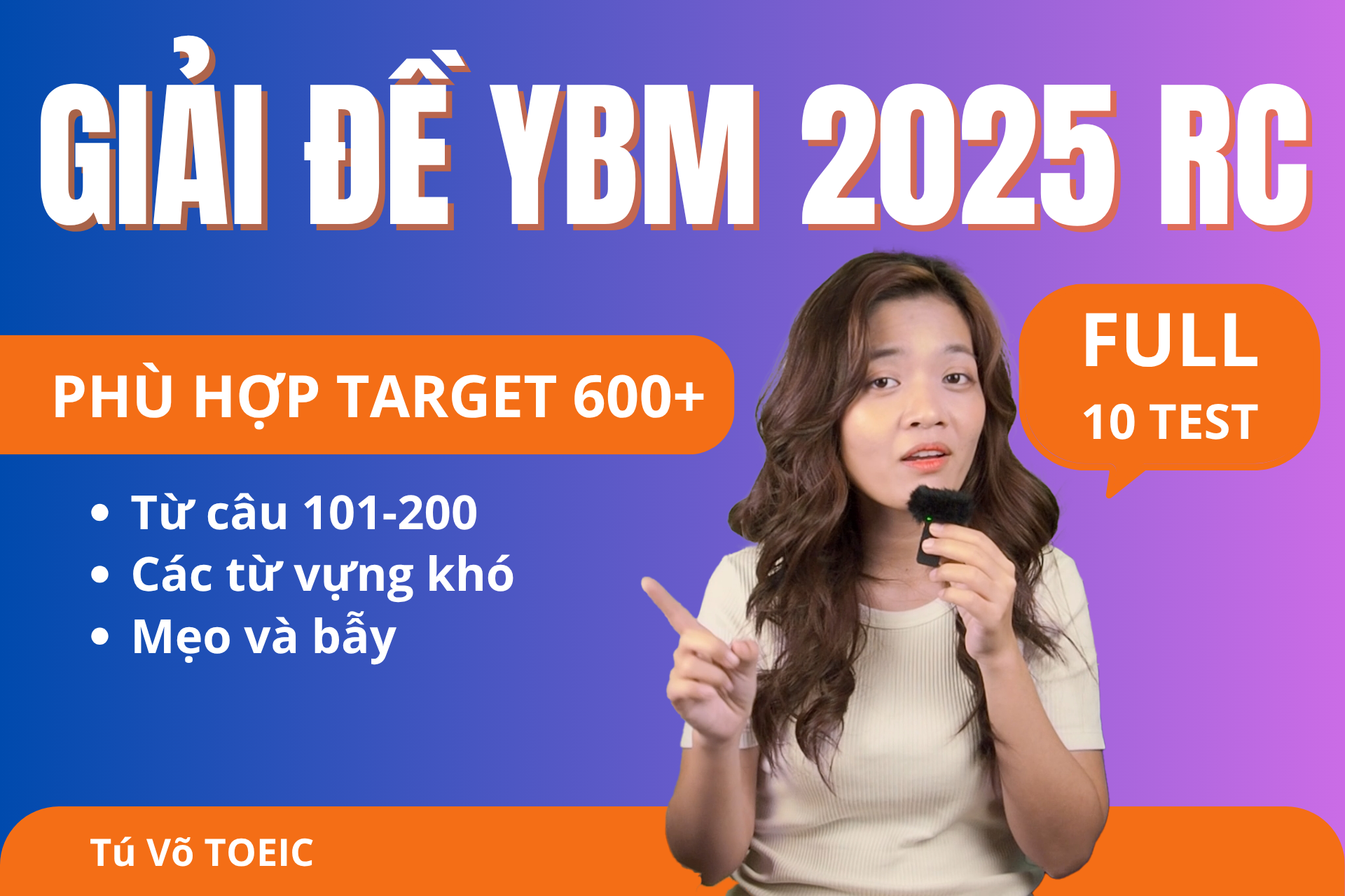 Bộ video hướng dẫn giải chi tiết Part 5, 6, 7 của 10 TEST TOEIC trong cuốn YBM 2025 RC mới nhất.